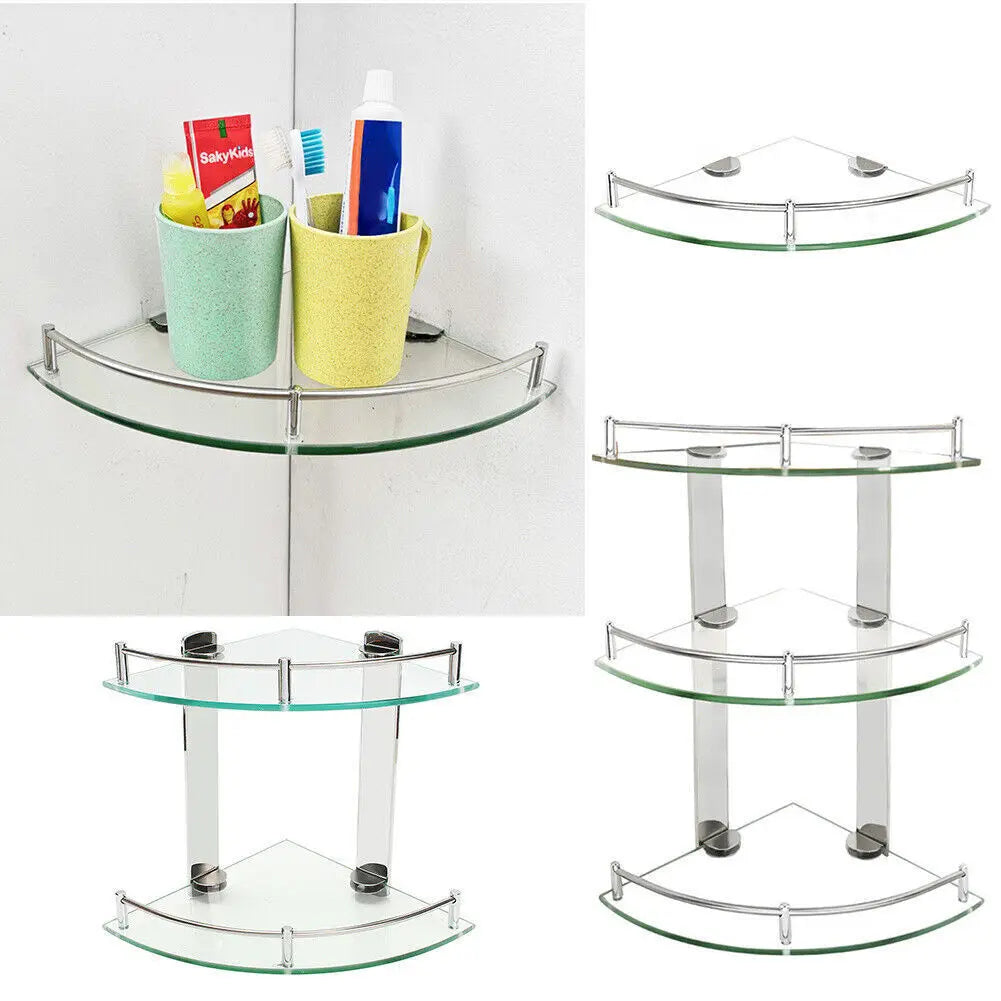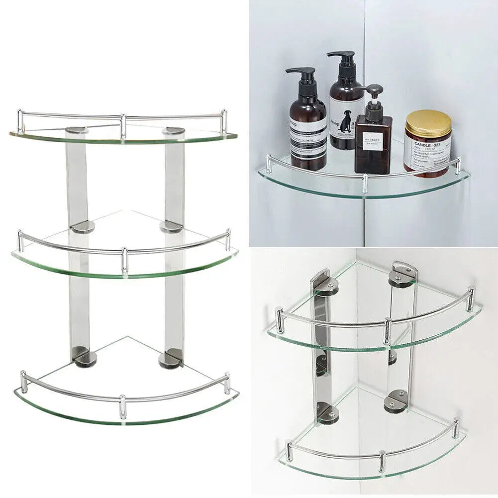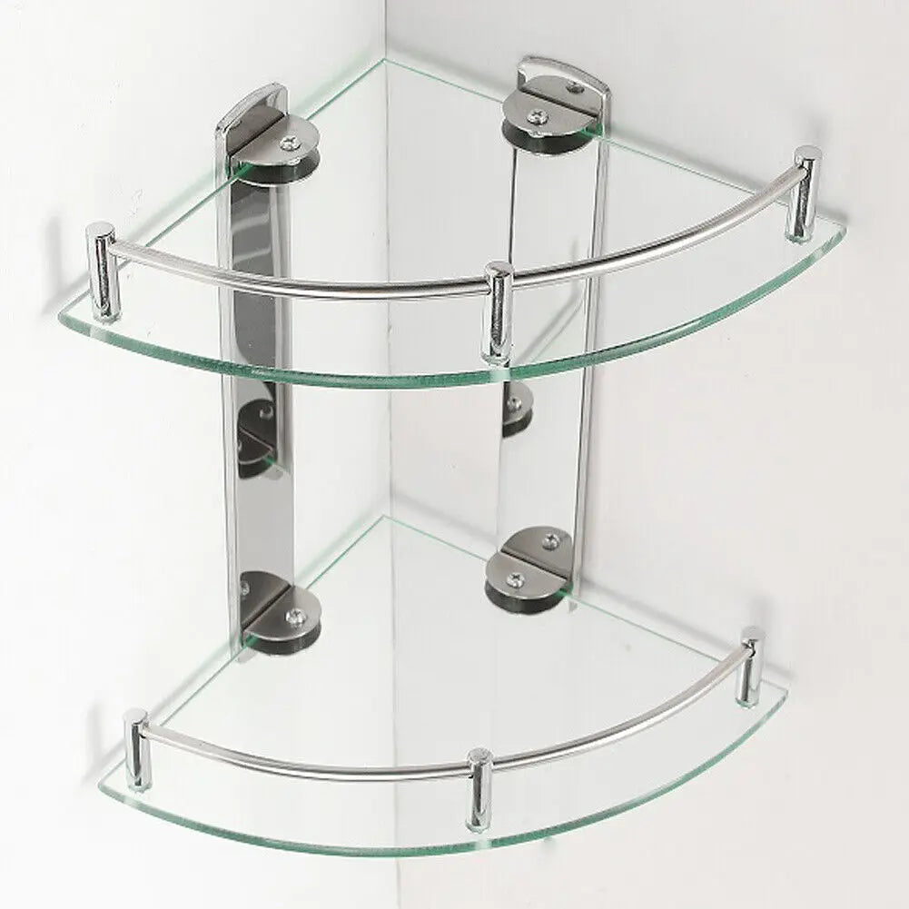 Clear Glass Corner Shower Shelf | 9.8 × 9.8 in | 2 or 3 Tier | Wall Mounted Bathroom Storage | Brick by Brick