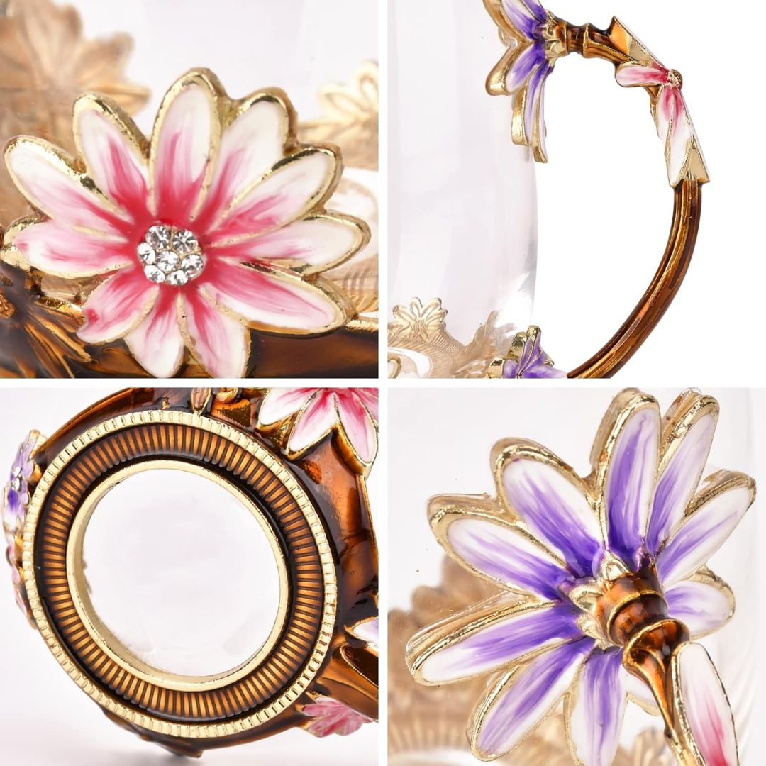 Glass Coffee Enamel Mug | 350ml | 3D Floral Glass Cup with Handle | Elegant Gift for Women | Brick by Brick