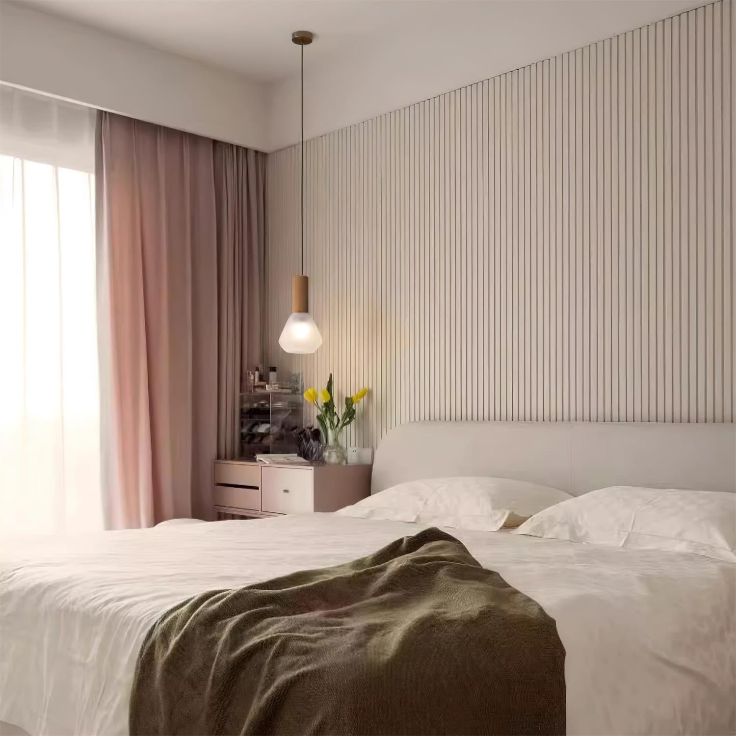 Minimalist Glass Pendant | 7.4 x 12.9 in | Frosted Shade | Wood Holder | E26/E27 Bulb | Brick by Brick
