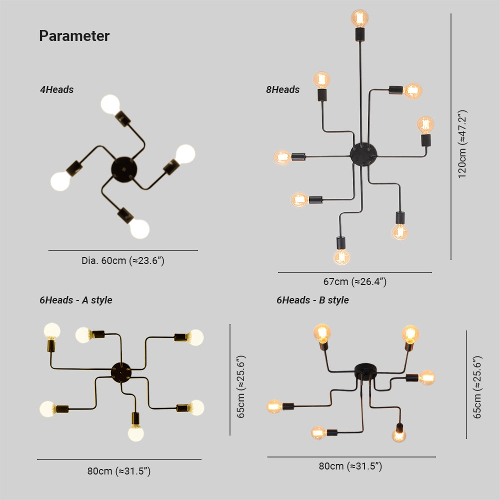 This Vintage Modern Minimalist Industrial Ceiling Lamp transforms any room with its raw elegance and bold lighting presence. Offered in 4, 6, or 8 bulb configurations, each version spreads ambient glow evenly while making a design statement. The matte black metal frame and minimalist structure strike a balance between industrial grit and modern simplicity. Ideal for dining rooms, living areas, lofts, or entryways, it installs via hardwired ceiling mount and supports standard E26/E27 bulbs (not included).