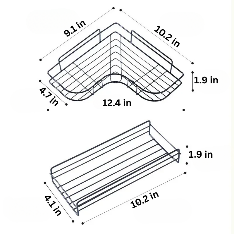 Dimensions: Rectangle 10.2 (L) x 4.1 (W) x 1.9 (H) in / Triangle 9.1 (Depth) x 10.2 (W) x 1.9 in Extended curved depth: 4.7 in (11.9 cm) Longest diagonal length: 12.4 in (31.5 cm)